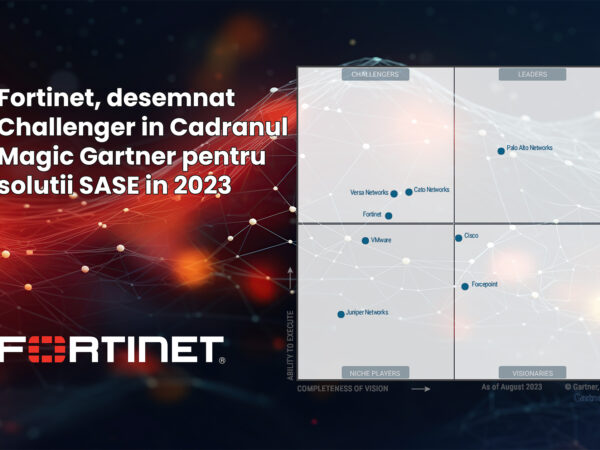 Fortinet, lider global in securitatea cibernetica, a obtinut una din cele mai valoroase distincti din industrie, fiind selectat “Challenger” in Cadranul Magic al Gartner pentru Securitatea Accesului la Servicii si Edge (SASE) pentru anul 2023.