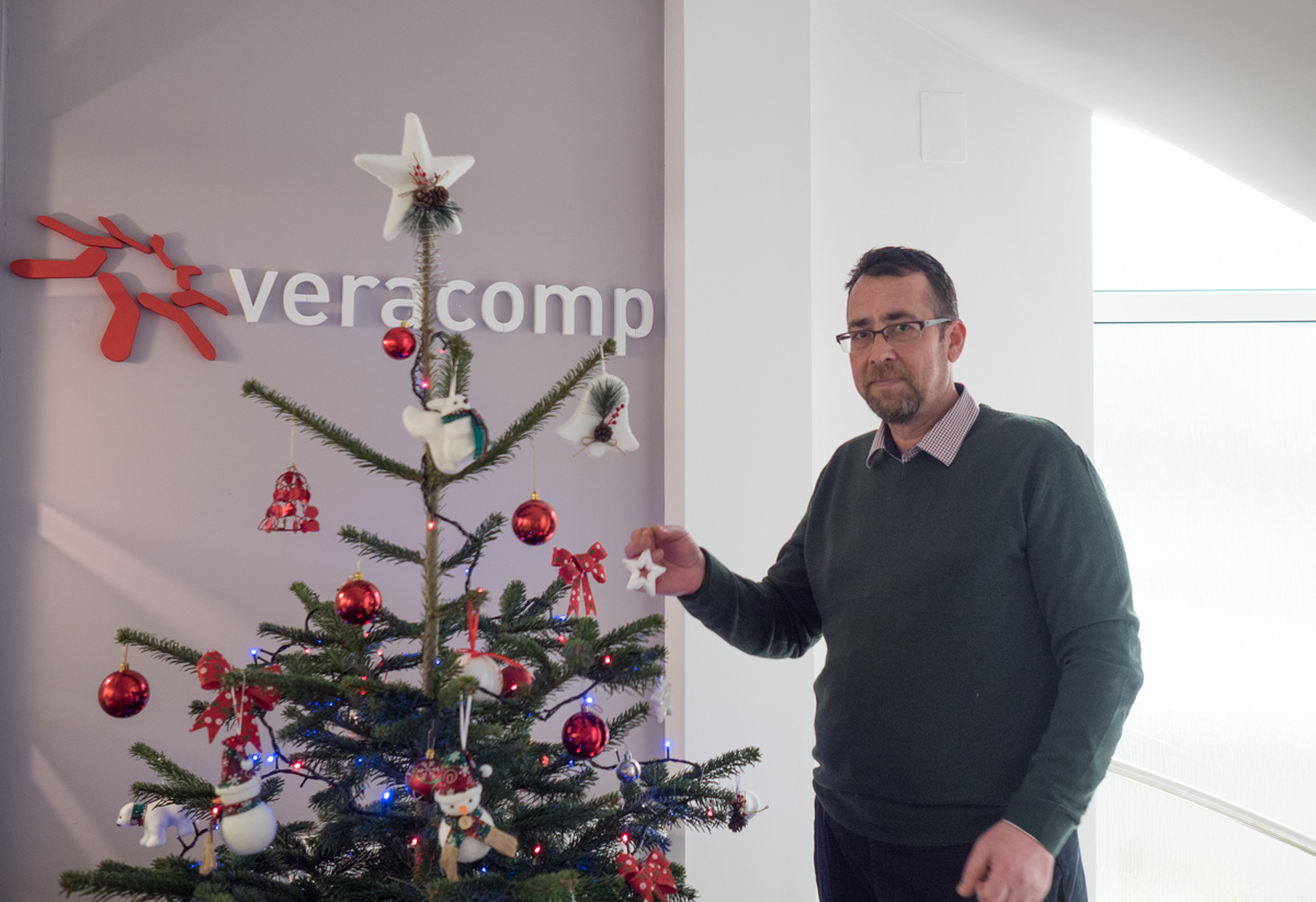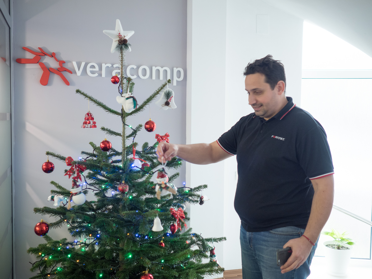 Braduti luminand in holuri, colinde cantate de boxele calculatorului sau de catre colegii talentati, ghirlande agatate de balustradele scarilor – asa arata casa Veracomp de ieri. Pentru ca se apropie Craciunul, vrem sa simtim atmosfera de sarbatoare si la serviciu, asa ca incercam, pe cat posibil, sa o aducem cat mai aproape.