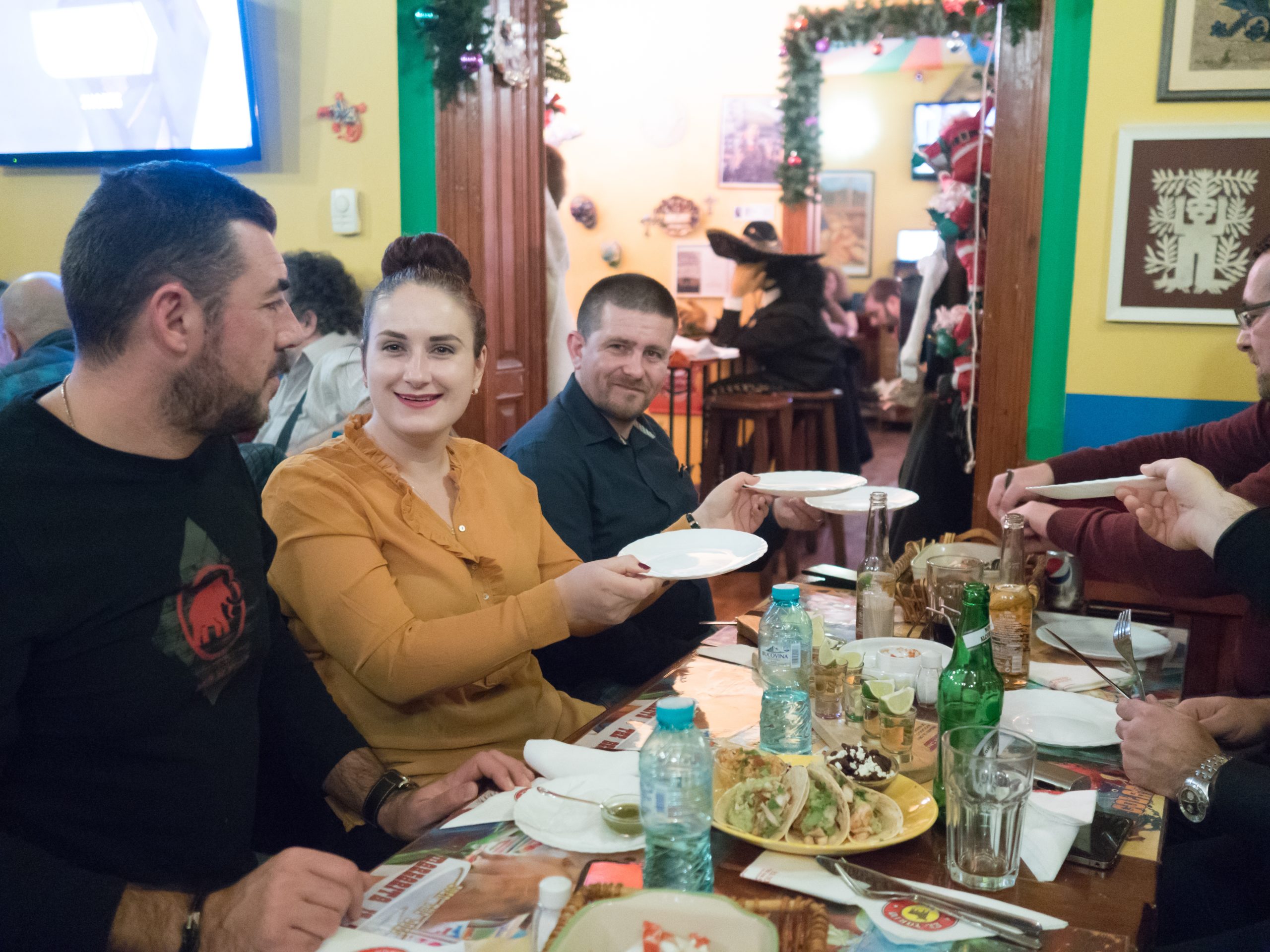 Restaurantul este unic. De la usa simti atmosfera speciala, mirosul inconfundabil al mancarurilor si ritmurile nebune ale muzicii mexicane. Toate acestea, la care se adauga sombreros, ambientul care emana in culori calde si vesele, au facut din restaurantul El Torito locul perfect pentru ca echipa Veracomp sa iasa la un shot de tequila.
