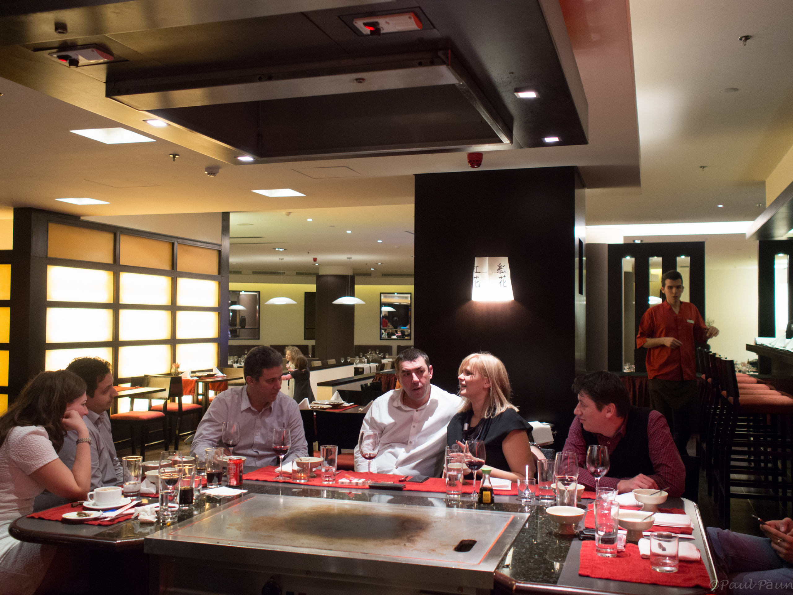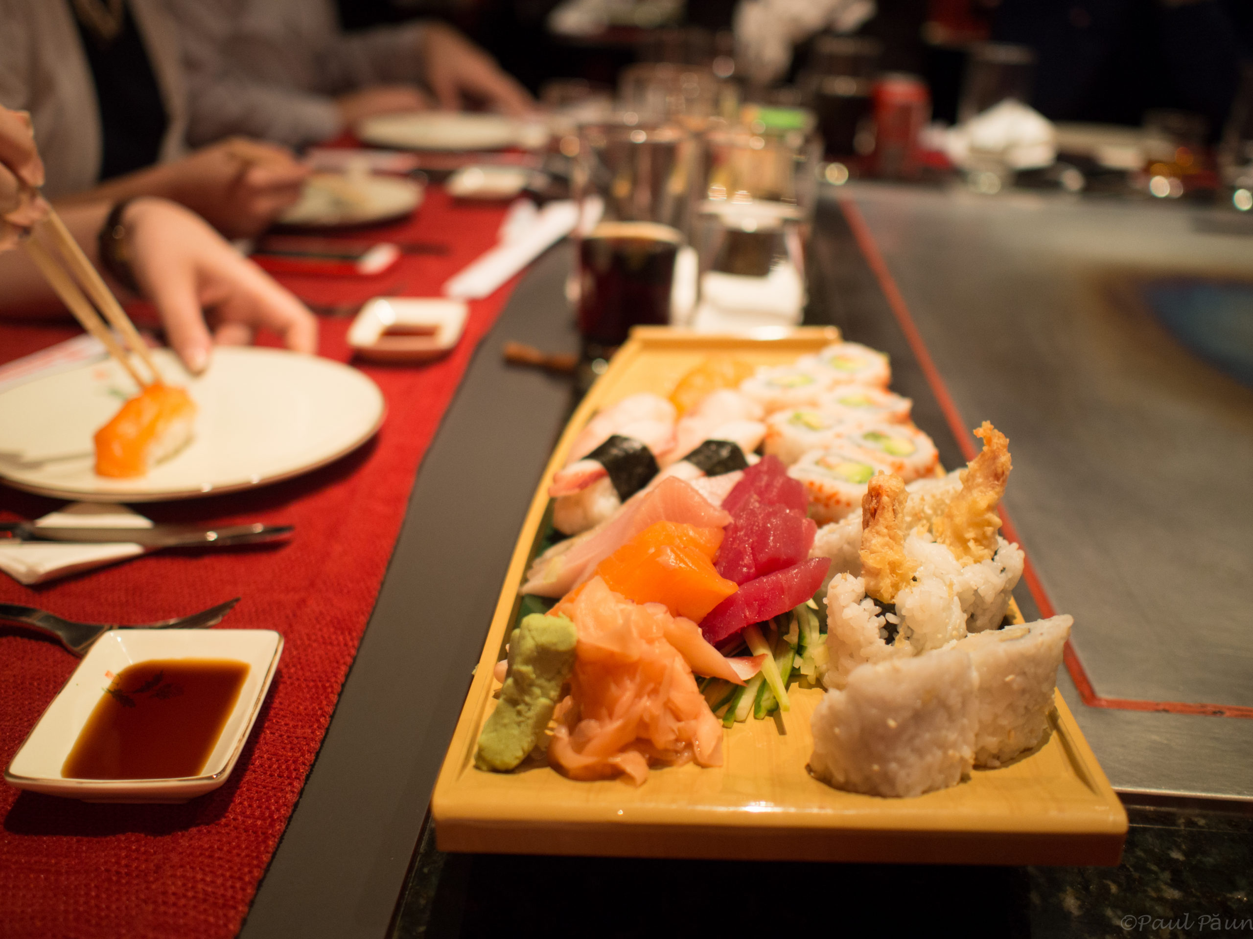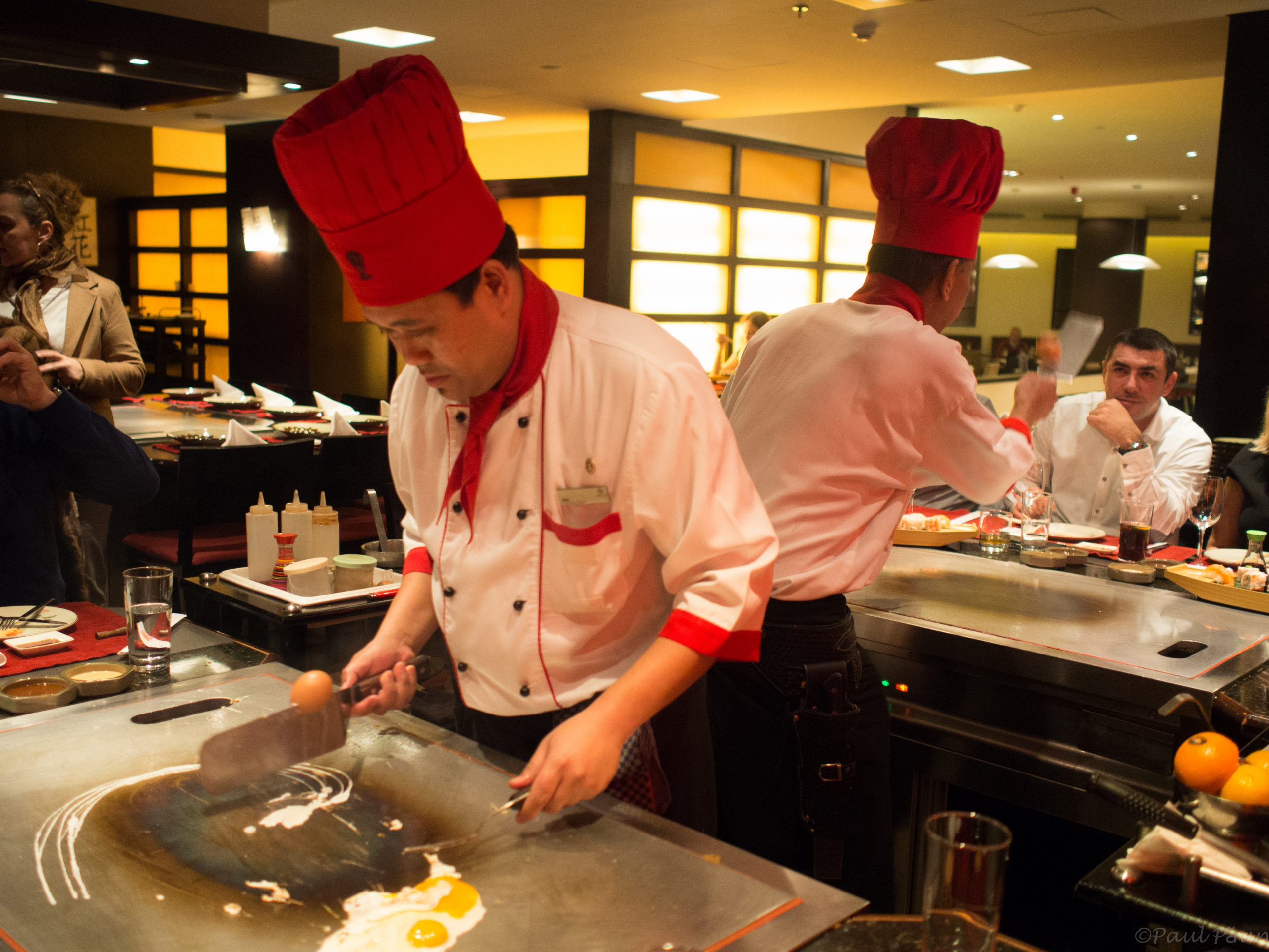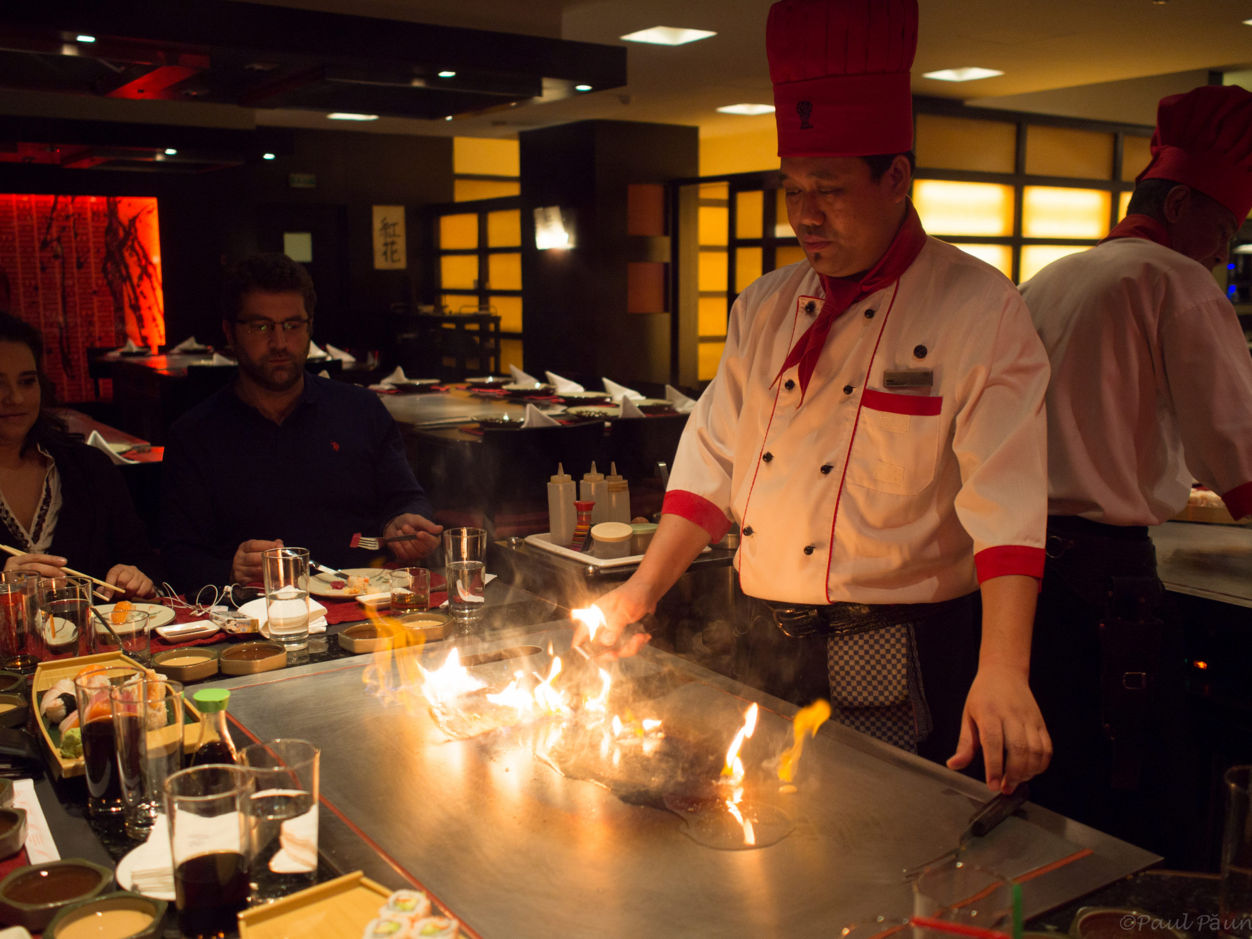 Cina savurata pe indelete la mesele teppan – cu feluri traditionale pe plita, platouri de sushi si preparate din carne- a meritat din plin.