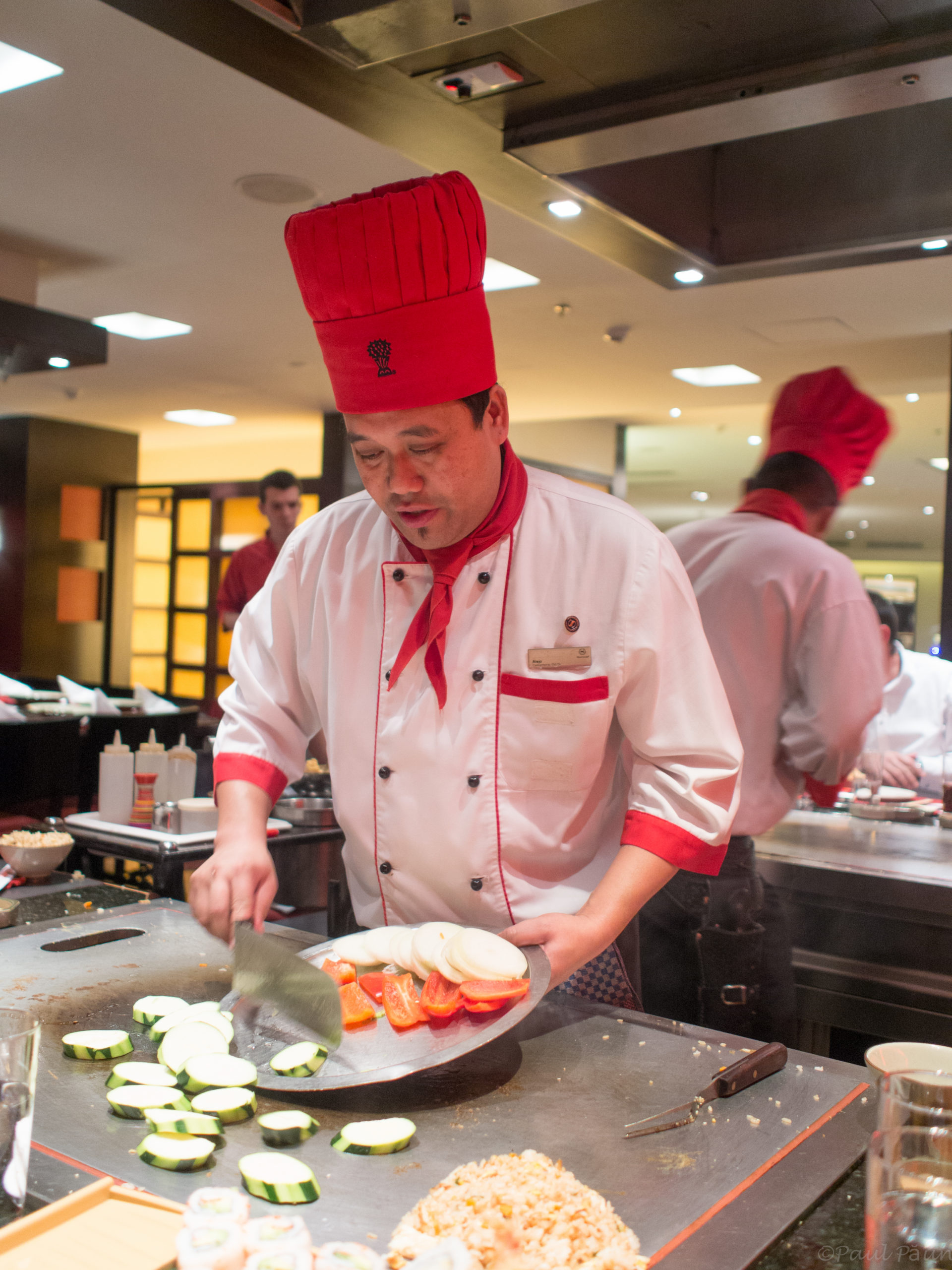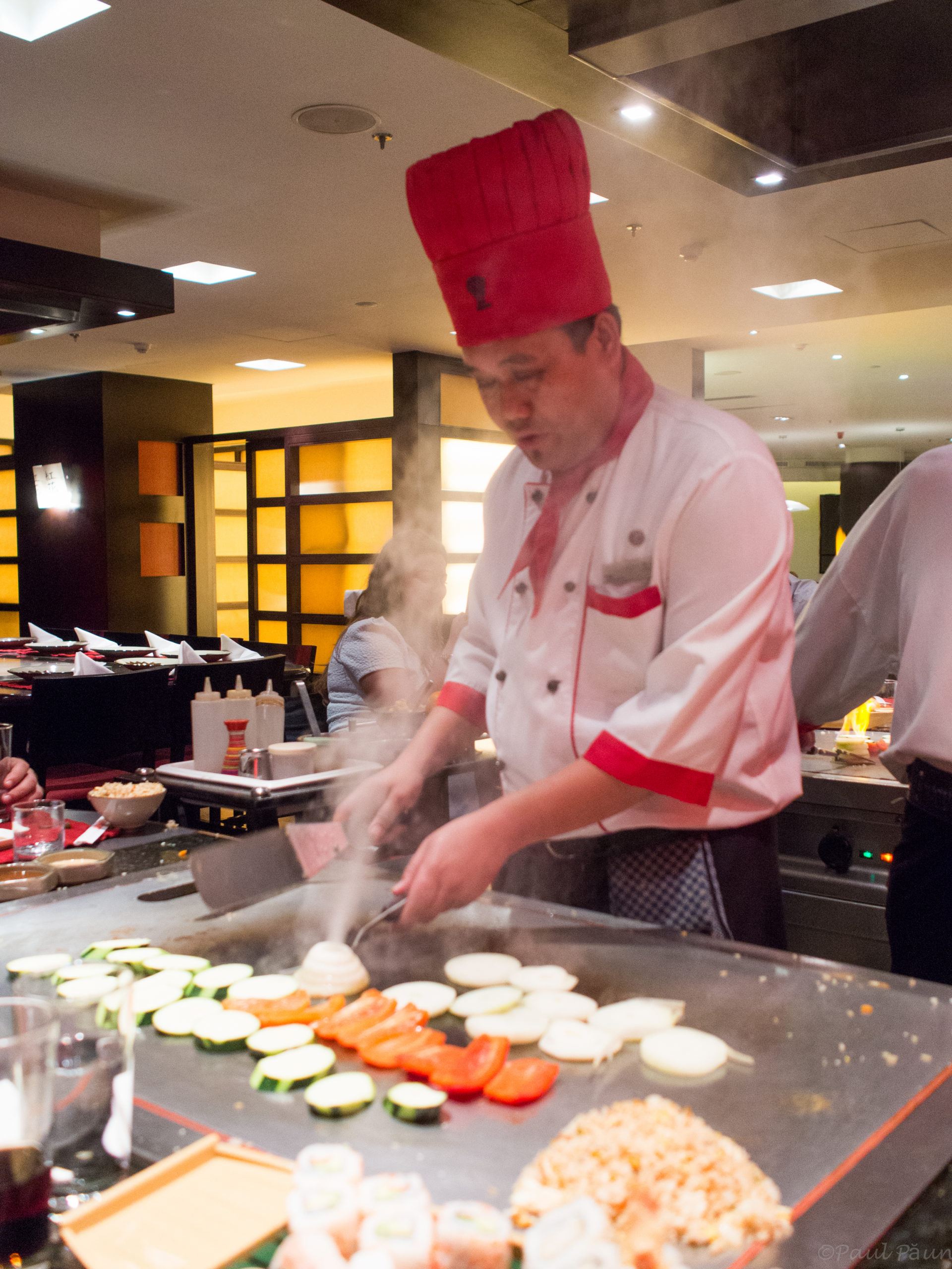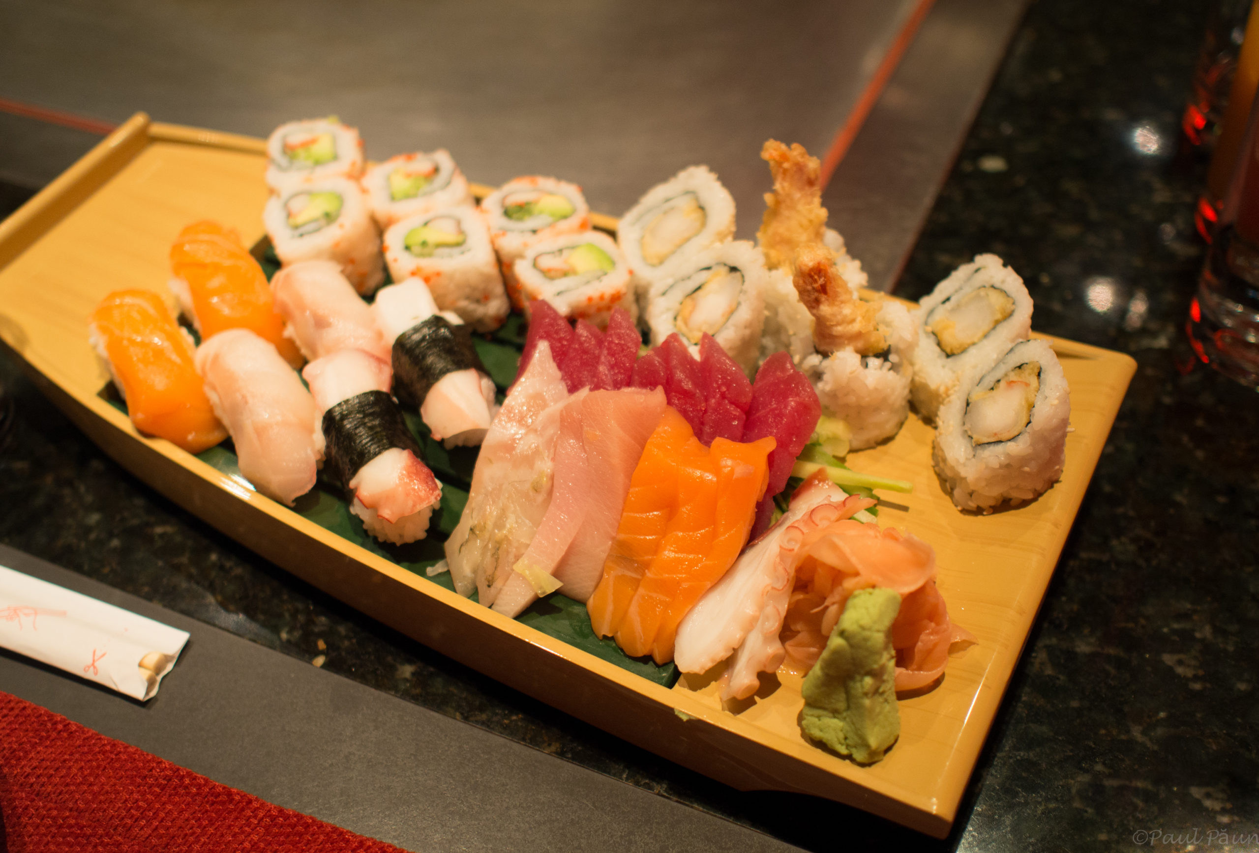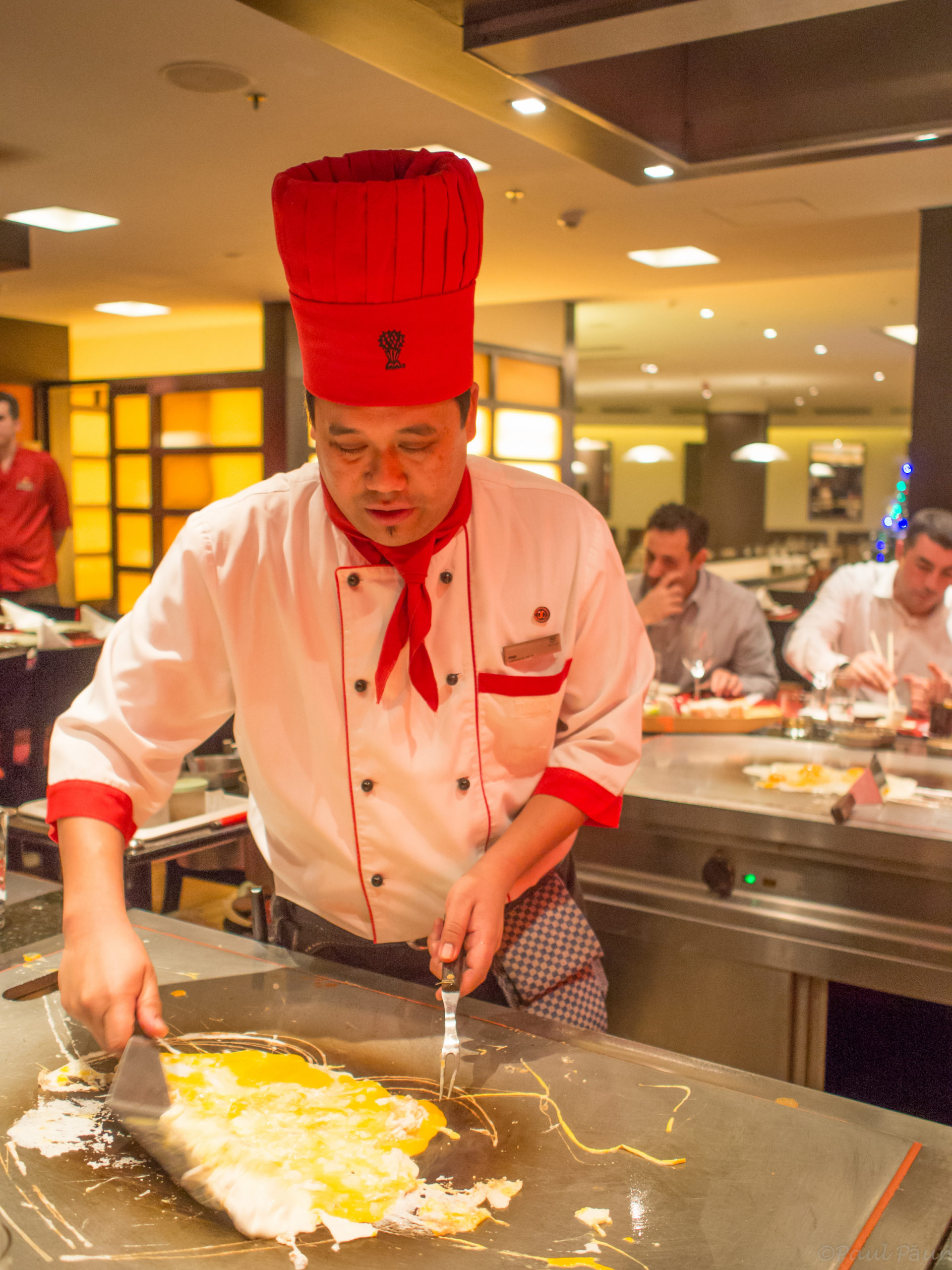 Cina savurata pe indelete la mesele teppan – cu feluri traditionale pe plita, platouri de sushi si preparate din carne- a meritat din plin.