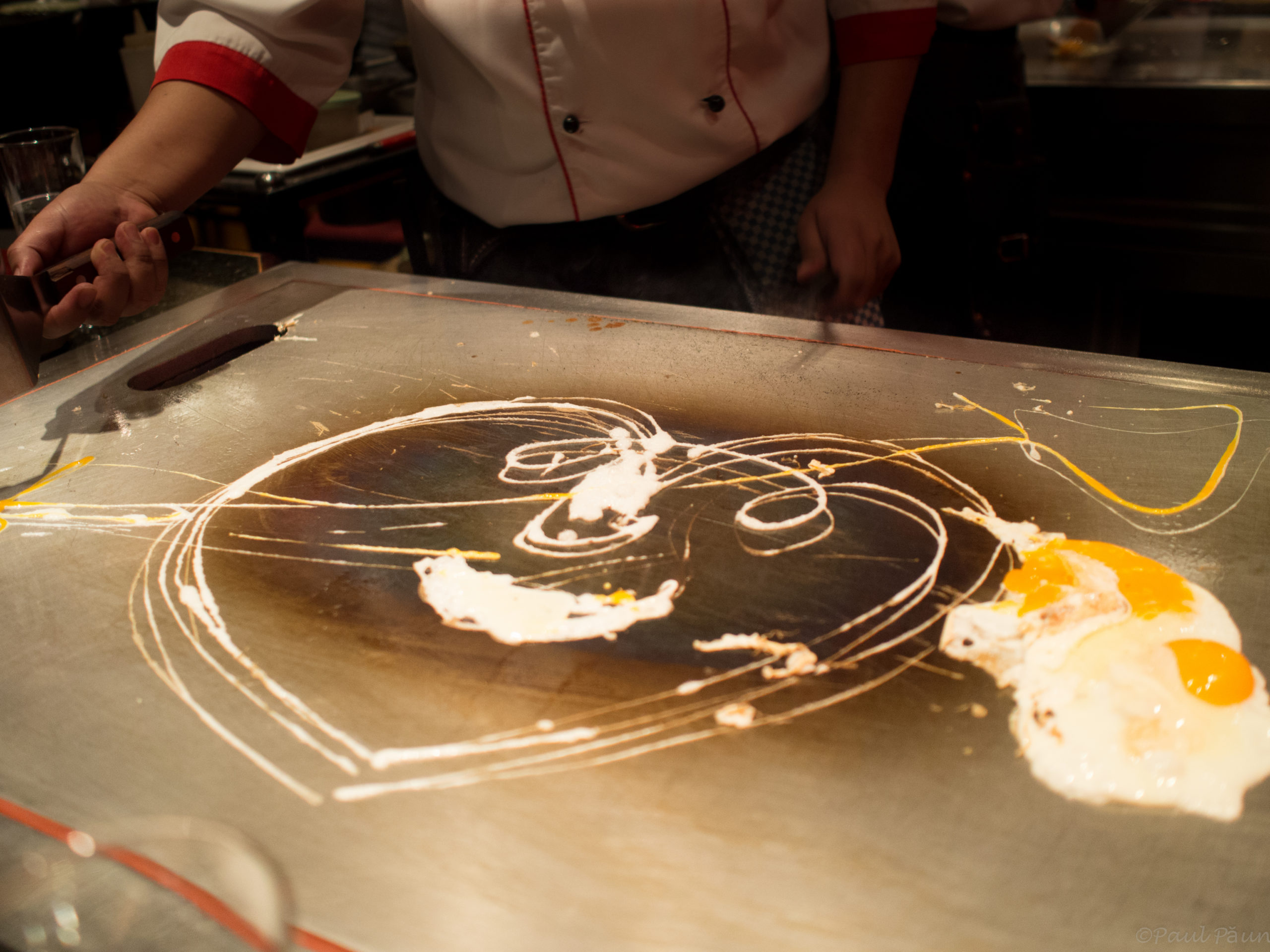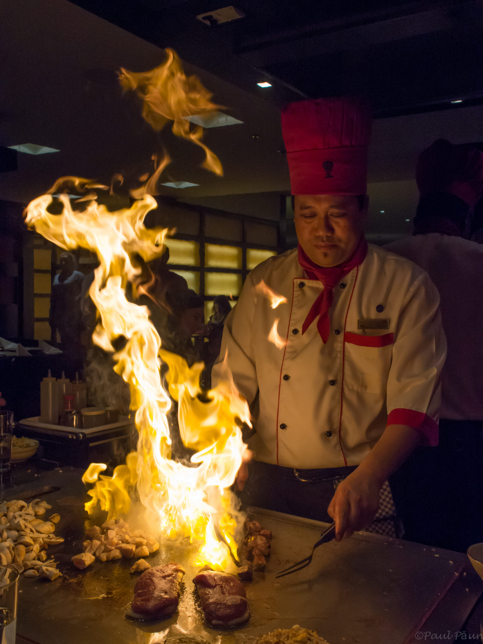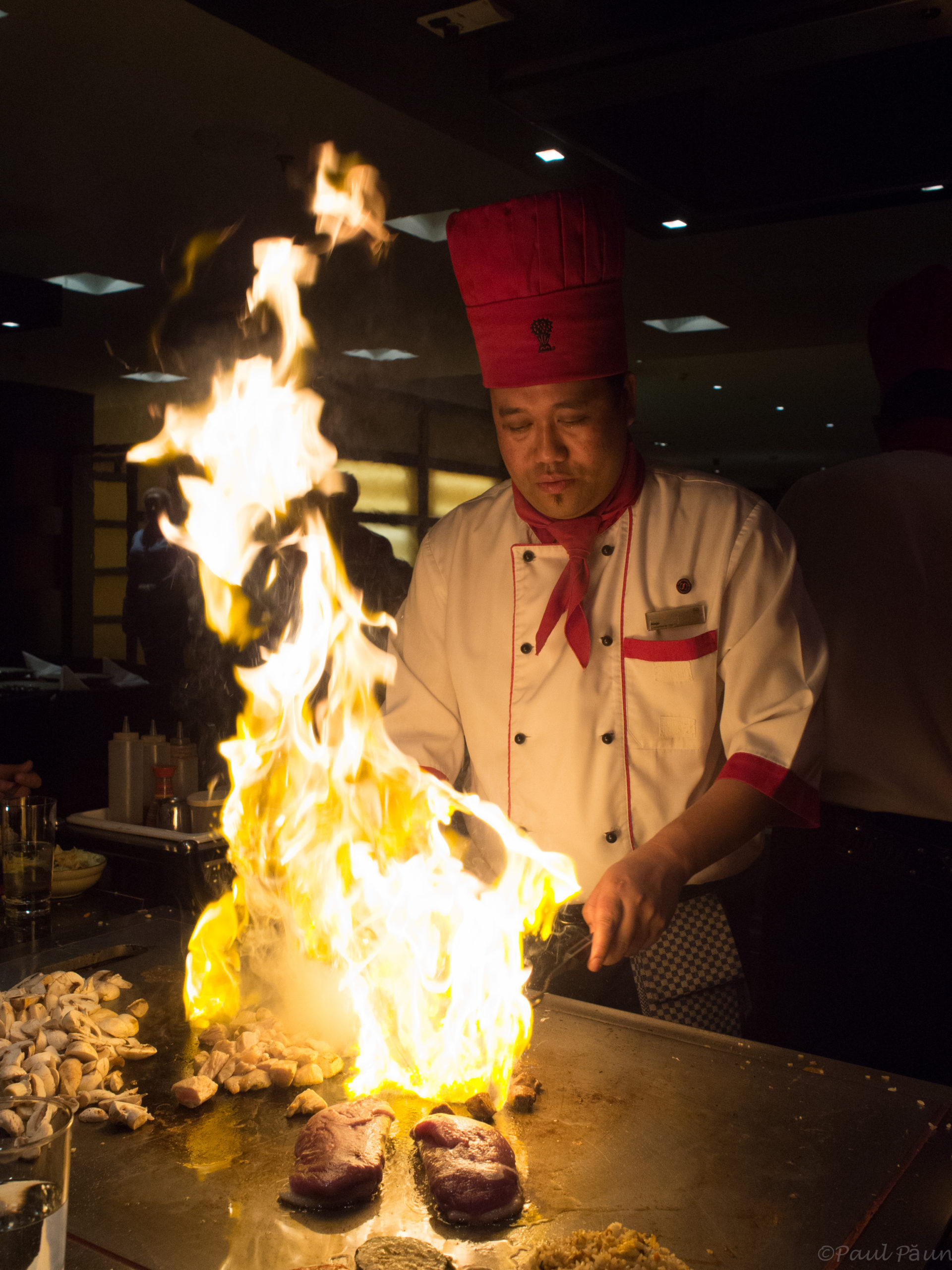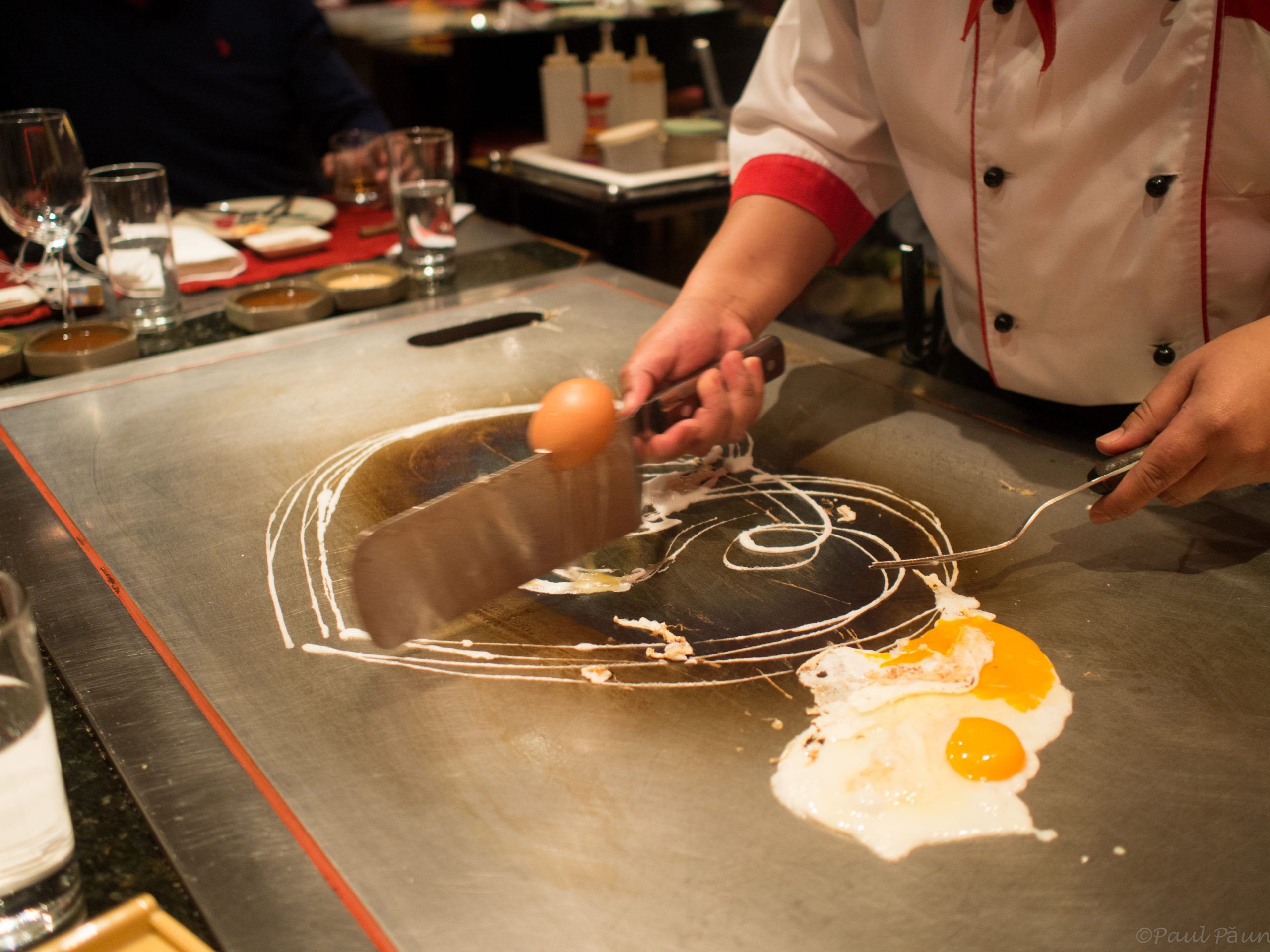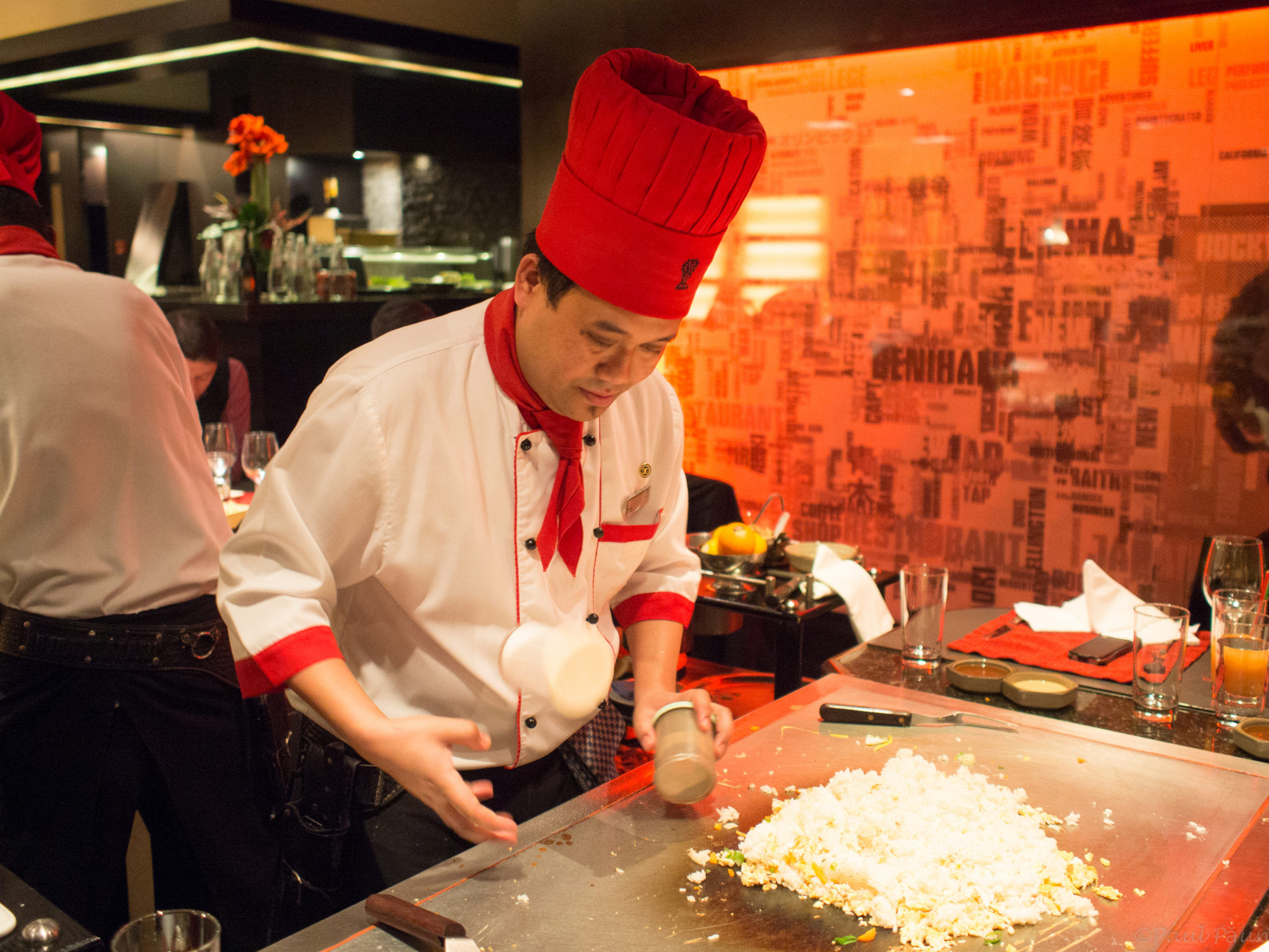 La Benihana ne-a asteaptat un adevarat spectacol de arta si traditie japoneza. Giumbuslucurile bucatarilor care au gatit in fata noastra ne-au lasat cu gura cascata. Daca am fi fost pusi sa alegem – ce anume sa facem mai intai -sa ne uitam cum bucatarul despica un ou in aer sau starneste eruptii de Vulcan sau sa mancam, cu siguranta multi nu am fi stiut ce sa spunem.