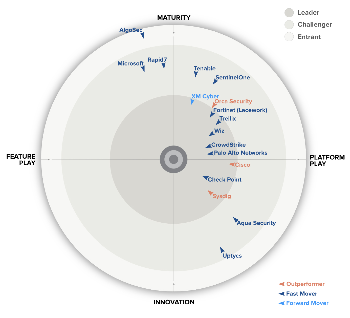 Raportul recunoaste CrowdStrike Falcon® Cloud Security pentru faptul ca este un “Fast Mover” in cadranul Maturity and Platform Play. CrowdStrike a obtinut un scor perfect de 5/5 in categorii cheie, cum ar fi:
