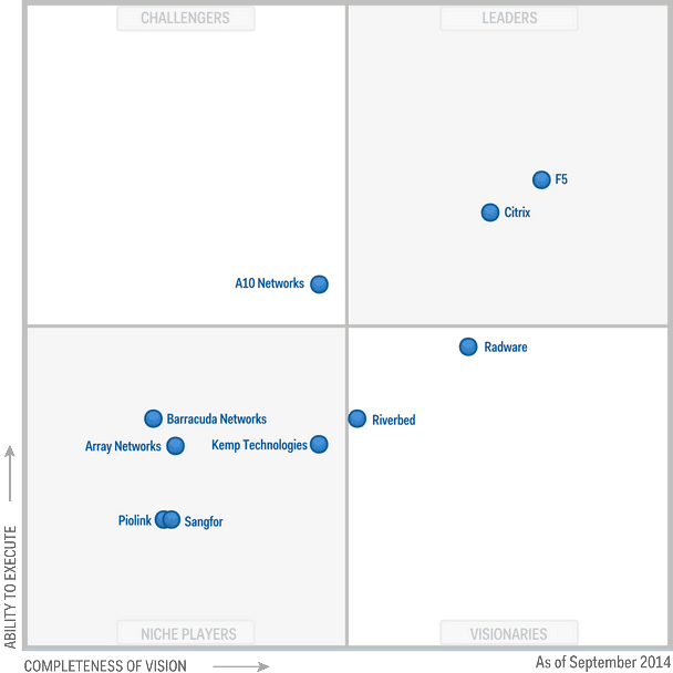 In noul raport Gartner publicat pe 21 octombrie, F5 este, pentru al optulea an consecutiv, lider incontestabil remarcandu-se prin inovatie si resurse tehnice. Un diferentiator primar pentru F5 este cunoasterea aprofundata a aplicatiilor implementate in medii complexe.
