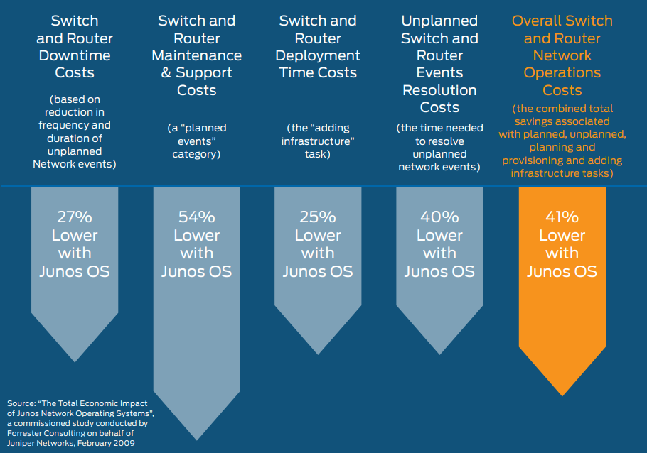 Evidenta este scaderea costului de detinere in conditiile in care cunoasterea acestui sistem de operare ofera access catre o gama larga de echipamente, din categorii diferite pentru intreg ciclul de operatiuni : implementare, administrare, depanare. Aditional, reducerea complexitatii este esentiala pentru a creste fiabilitatea si implementarea mult mai rapida a serviciilor cu un cost de detinere mai mic.