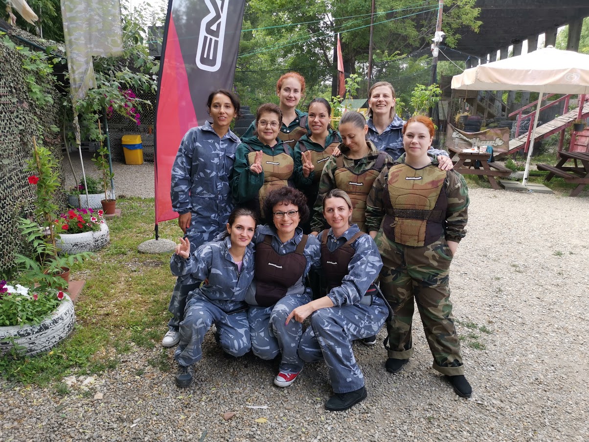 Noi am ales sa mergem astazi la Academia de paintball ca sa ne distram. Si, da, sa fim impreuna, sa comunicam si sa lucram in echipa. Ne-a iesit distractia, clar. Putine activitati ofera participantilor atat de multa satisfactie precum Paintball-ul. Mixul perfect de concentrare si de activitate fizica ne-a dat doza de deconectare de care aveam nevoie. Pana la urmatoarea iesire.