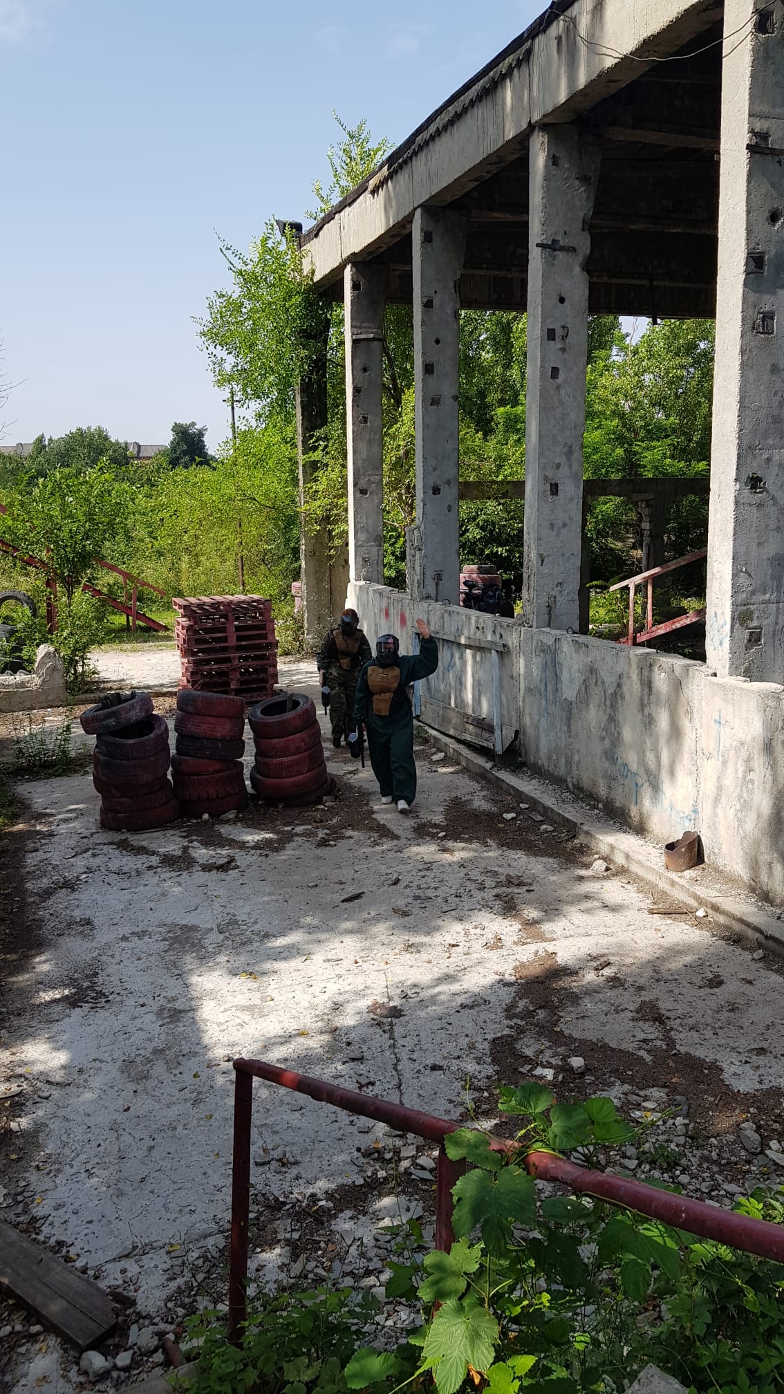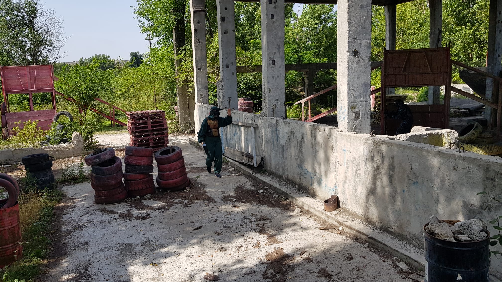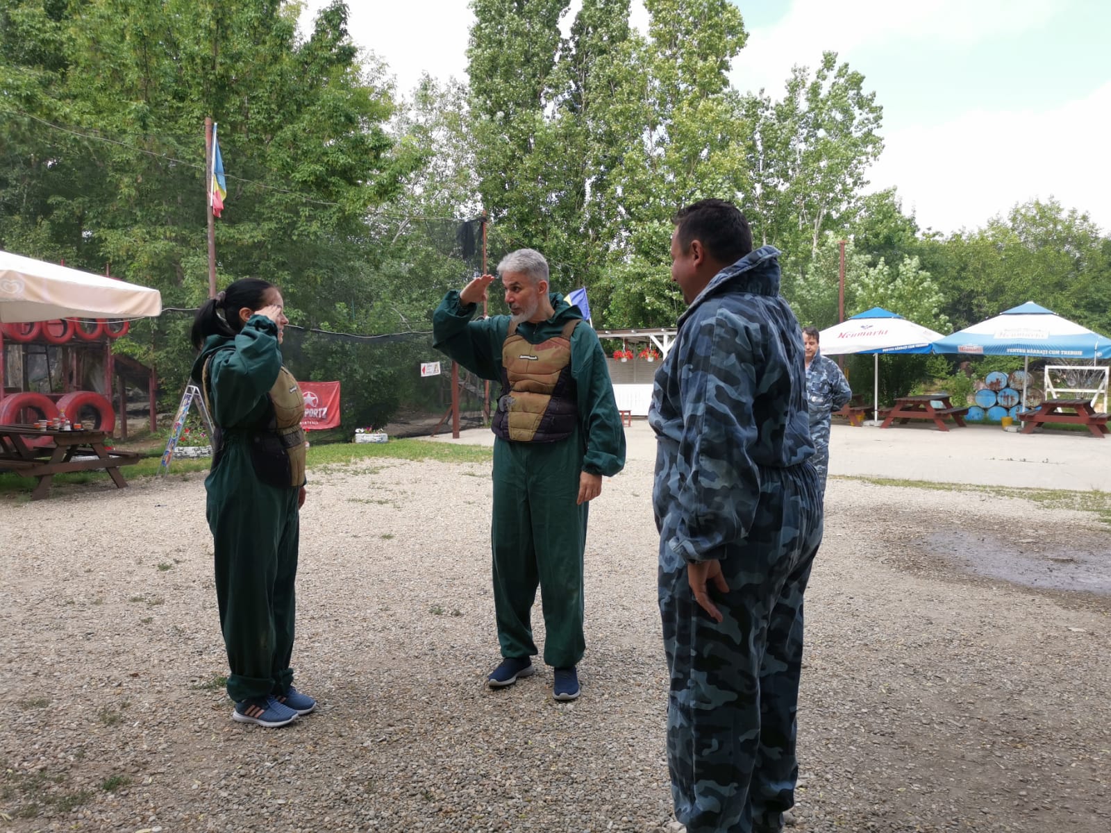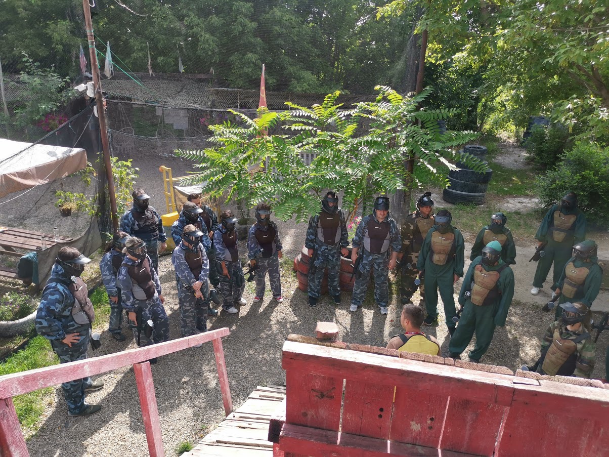 Ajunsi la Academia de paintball la ora 09.00 pe un cer plumburiu si un vant de vara placut ne-am impartit in doua echipe-Albastri contra Verzi-, ne-am pus castile, ne-am luat pustile si…la asalt!