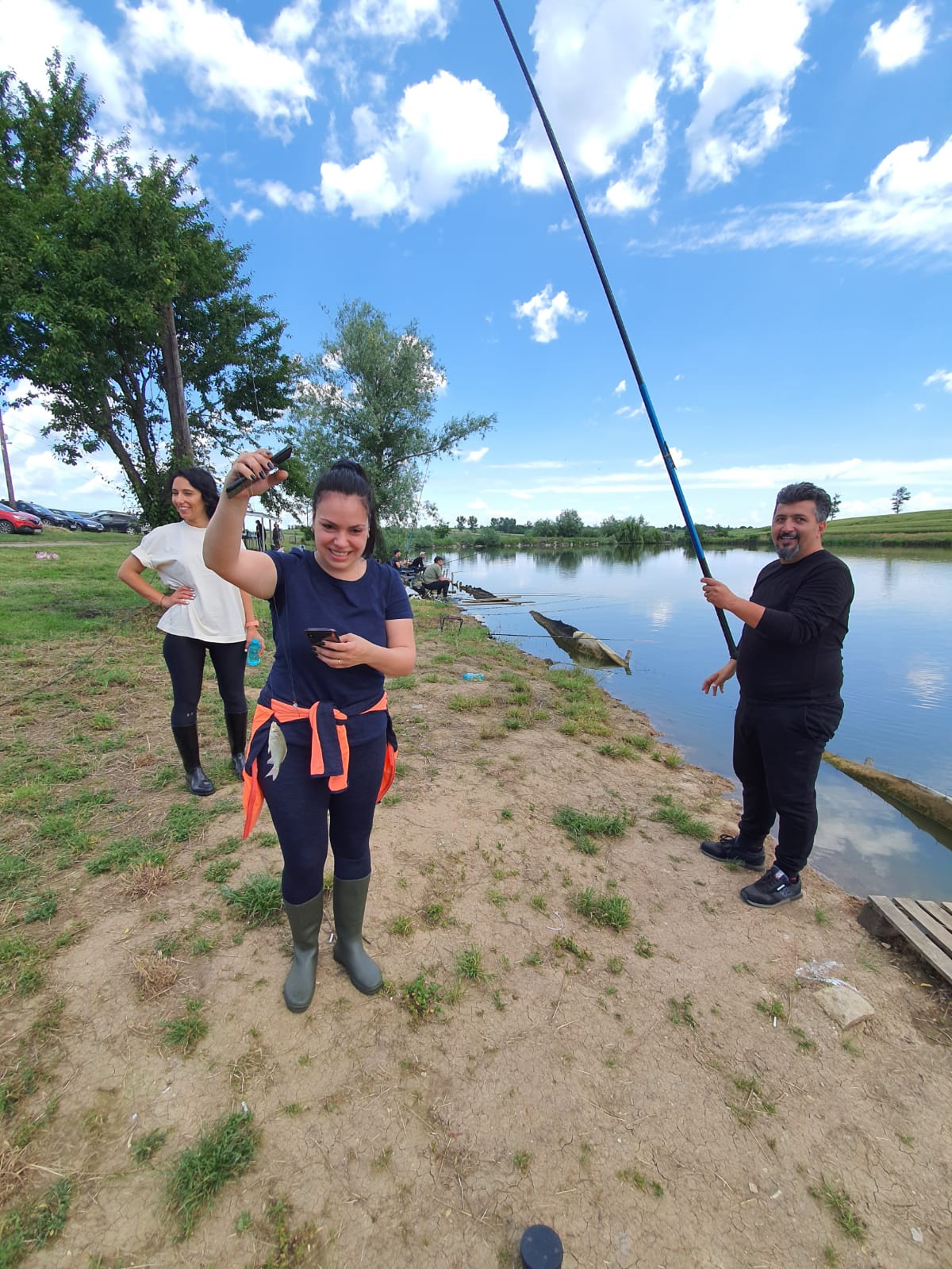Impatimitii si pasionatii chiar s-au asezat la pescuit. Si chiar au si prins carasei mici. Noi ceilalti, care nu am venit chiar pentru pescuit si nu suntem chiar «balta type » (am preluat sintagma asta) am facut si noi ce am putut. Am cules maci, am jucat carti sau mima. Iar colega noastra, Mircea, cu parul de culoarea prazului, a fredonat toata dimineata, topaind pe iarba : «Fii rebela!»