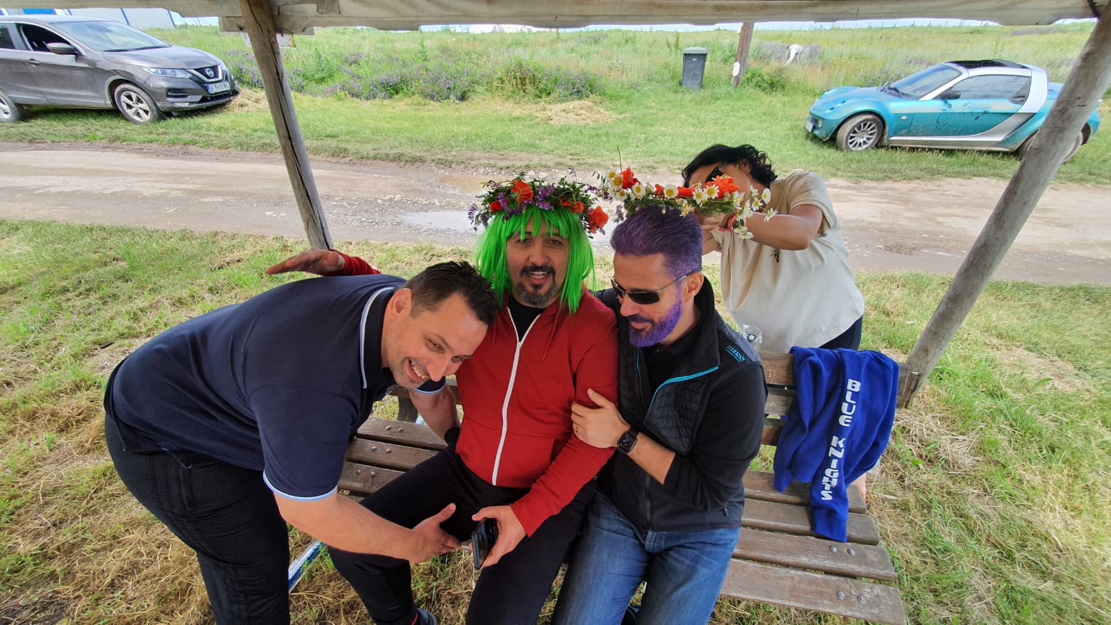 Nu mai stiu sigur daca Ludmila si Silvia, colegele noastre cu coronite pe cap, erau acolo in calitate de talisman norocos sau…nu pescuiau ? 😊 Da, stiu, pentru cei care ne cunosc, intuiesc intrebarea care sta pe buze dar parca nu prea iese – Cel vopsit mov este… ? Chiar este… ?
