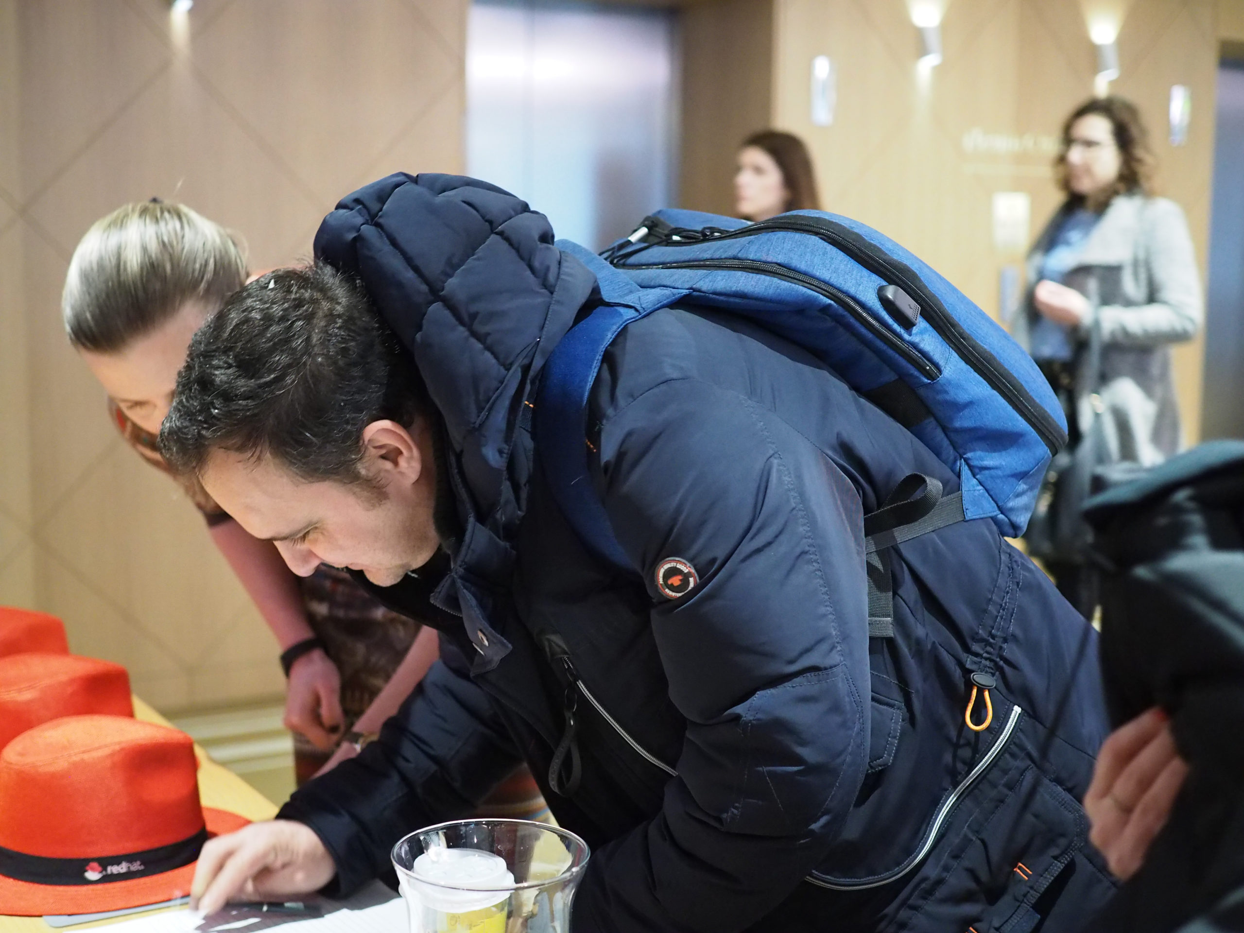 06 februarie anunta o zi friguroasa si intunecoasa, pe care insa noi o asezonam cu zambete si o haina calduroasa.Red Hat bineinteles 😊. Bucurosi sa fim gazde, savuram cafeaua si ne punem palariile. Partenerii ne surprind placut si ajung chiar inainte de ora inregistrarii.