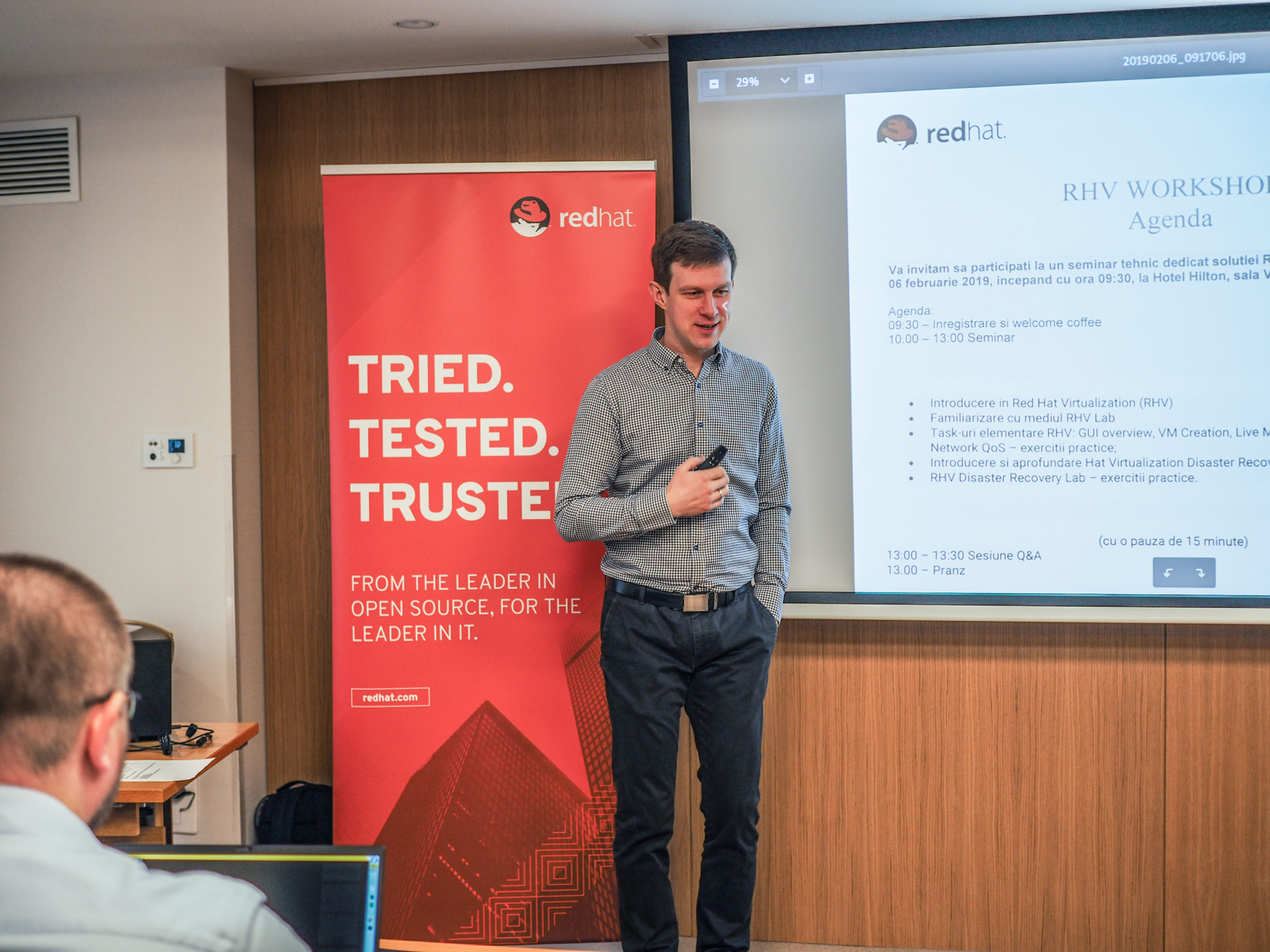 Asa ca am decis sa dam startul evenimentelor pe 2019 cu Red Hat Virtualization. Un workshop dedicat partenerilor nostri carora le multumim pentru prezenta.