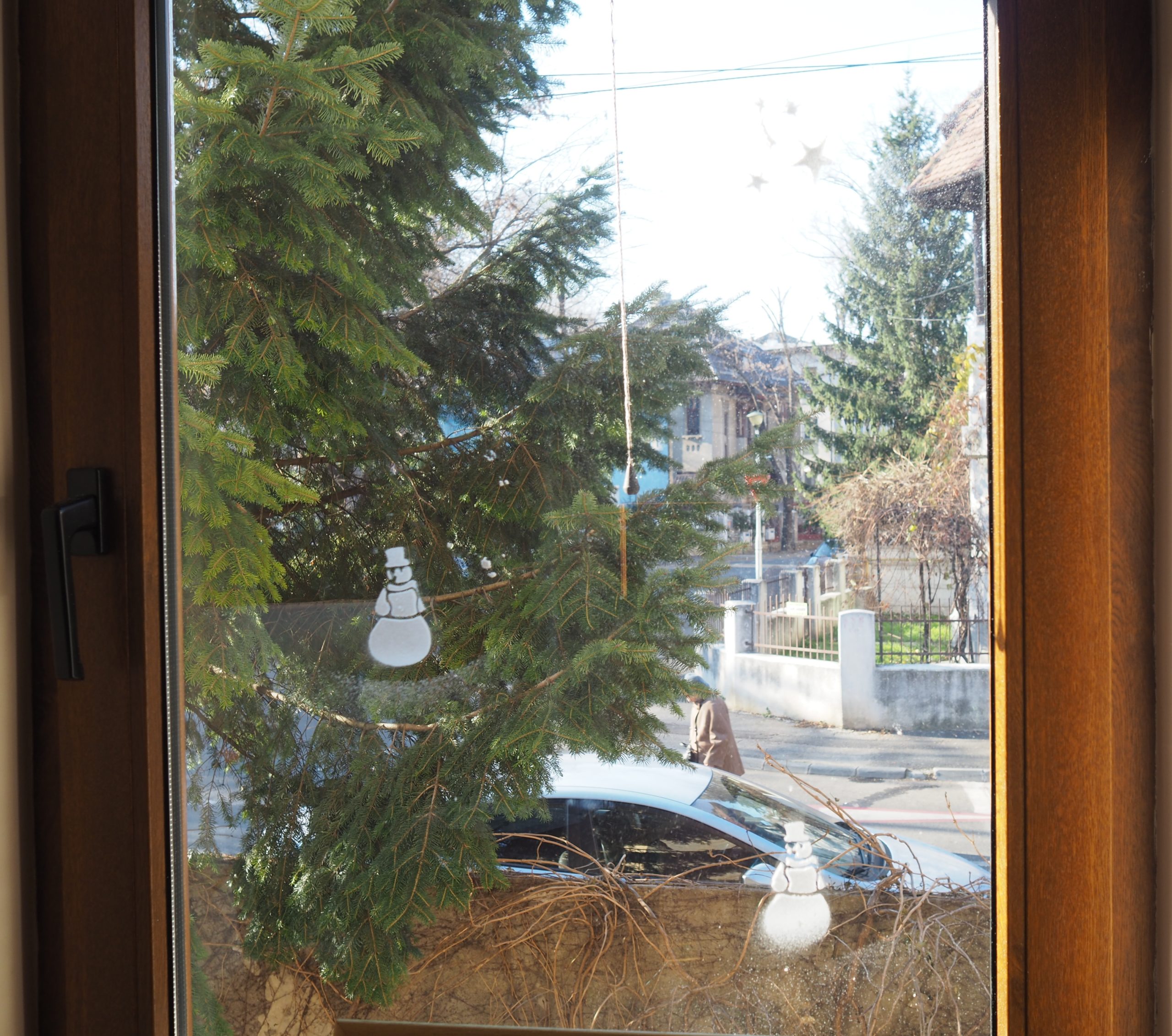 L-am declarat pe Stefan maestru de ceremonii. Globurile sunt puse cu arta si, mai ales, cu bucurie si cu suflet. Bradul este gata si zambetele pe buzele tuturor. Ferestrele pictate sunt ca niste porti magice dincolo de al caror prag ne asteapta Craciunul.