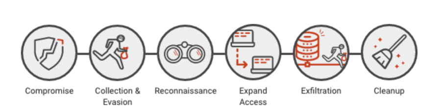 To help you to understand what those data visualisations at Kibana actually mean, have a look at Figure 4, created by our friends at SentinelOne [3]. Even though it is coming from the vendor, it is well aligned with MITRE’s idea of using TTPs to explain attack behaviour.