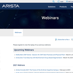 In place of our one-day technical forums, we are hosting a number of webinars to cover the individual agenda topics for our forthcoming Cloud Builders series. We will cover a range of technical topics and provide practical demonstrations of innovative Arista EOS® features. We will be discussing best practices for designing and deploying data centre networks, as well as showcasing our latest features in automation, analytics and security.