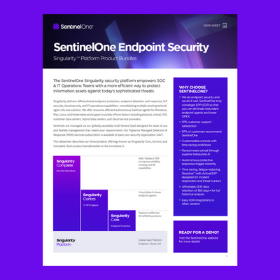 SentinelOne are redefining cybersecurity by pushing the boundaries of autonomous technology. SentinelOne’s Singularity™️ XDR Platform encompasses AI-powered prevention, detection, response, and threat hunting across user endpoints, containers, cloud workloads, and IoT devices. Empowering modern enterprises to defend faster, at greater scale, and with higher accuracy across their entire attack surface.