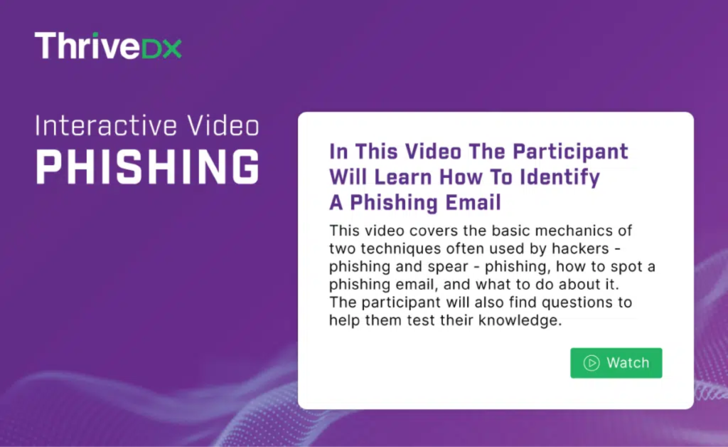 Video tương tác là “đặc sản” của Khóa đào tạo nâng cao nhận thức bảo mật của ThriveDX, thường được sử dụng trong các mô-đun ThriveDX do yếu tố giải trí và hiệu quả học tập cao. Dưới đây là một ví dụ về Đào tạo nâng cao nhận thức bảo mật ThriveDX tương tác.